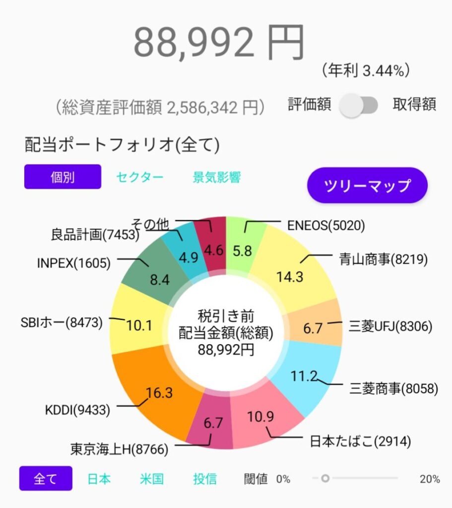 資産評価額 | 配当金額(税引前) | 年利 |